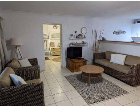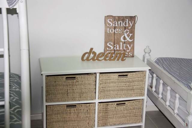 1 Queen bedroom, 2nd Bedroom sleeps 5 in Double bunk bed, and 2 single bunks.